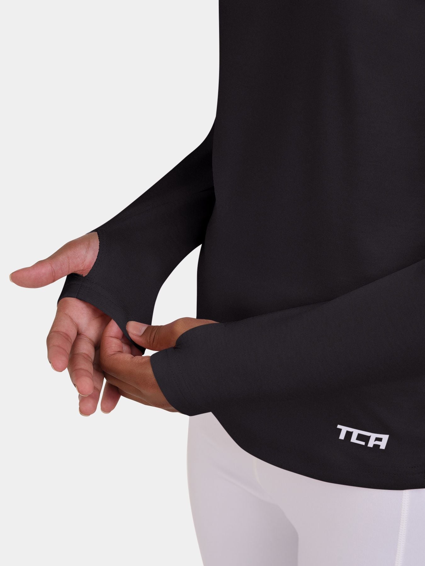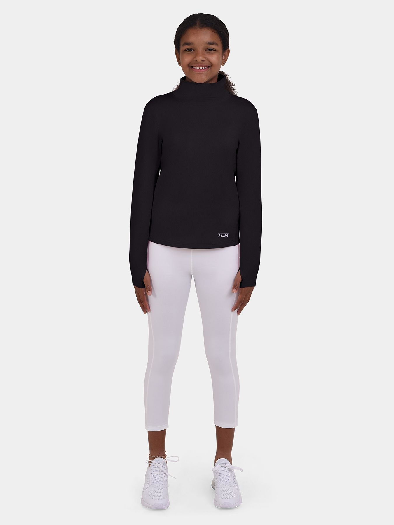 Warm-Up Thermal Long Sleeve Funnel Neck Top For Girls With Brushed Inner Fabric, Thumbholes & Reflective Strips