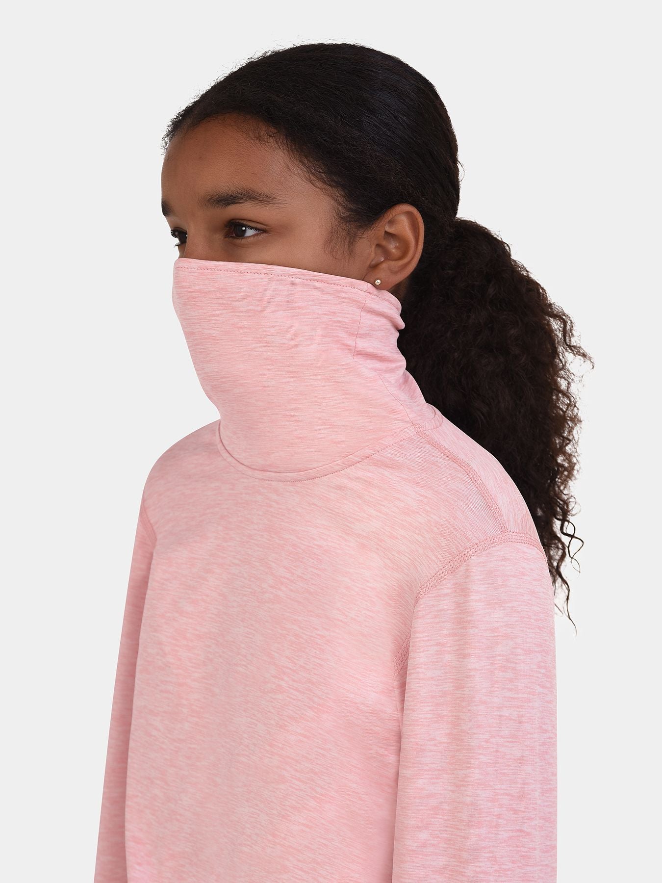 Warm-Up Thermal Long Sleeve Funnel Neck Top For Girls With Brushed Inner Fabric, Thumbholes & Reflective Strips