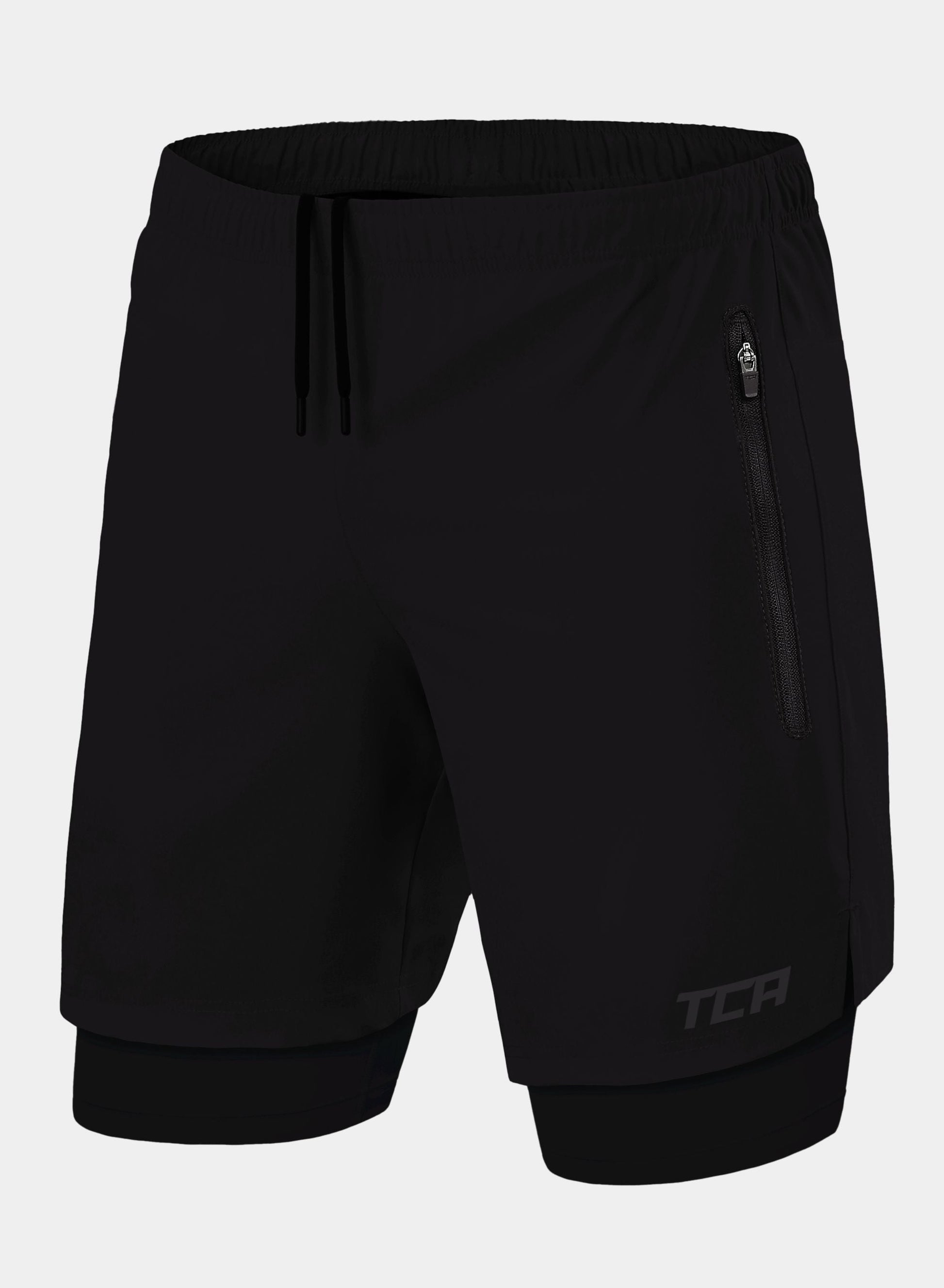 TCA men's 2 in 1 running shorts are perfect for any intense training! Inner compression shorts are paired with lightweight outer for ultimate performance. Designed with quality QuickDry fabric, our men's sports shorts keep you dry and comfortable during every workout. Unsure about sizing? Order a size up for a more comfortable fit.