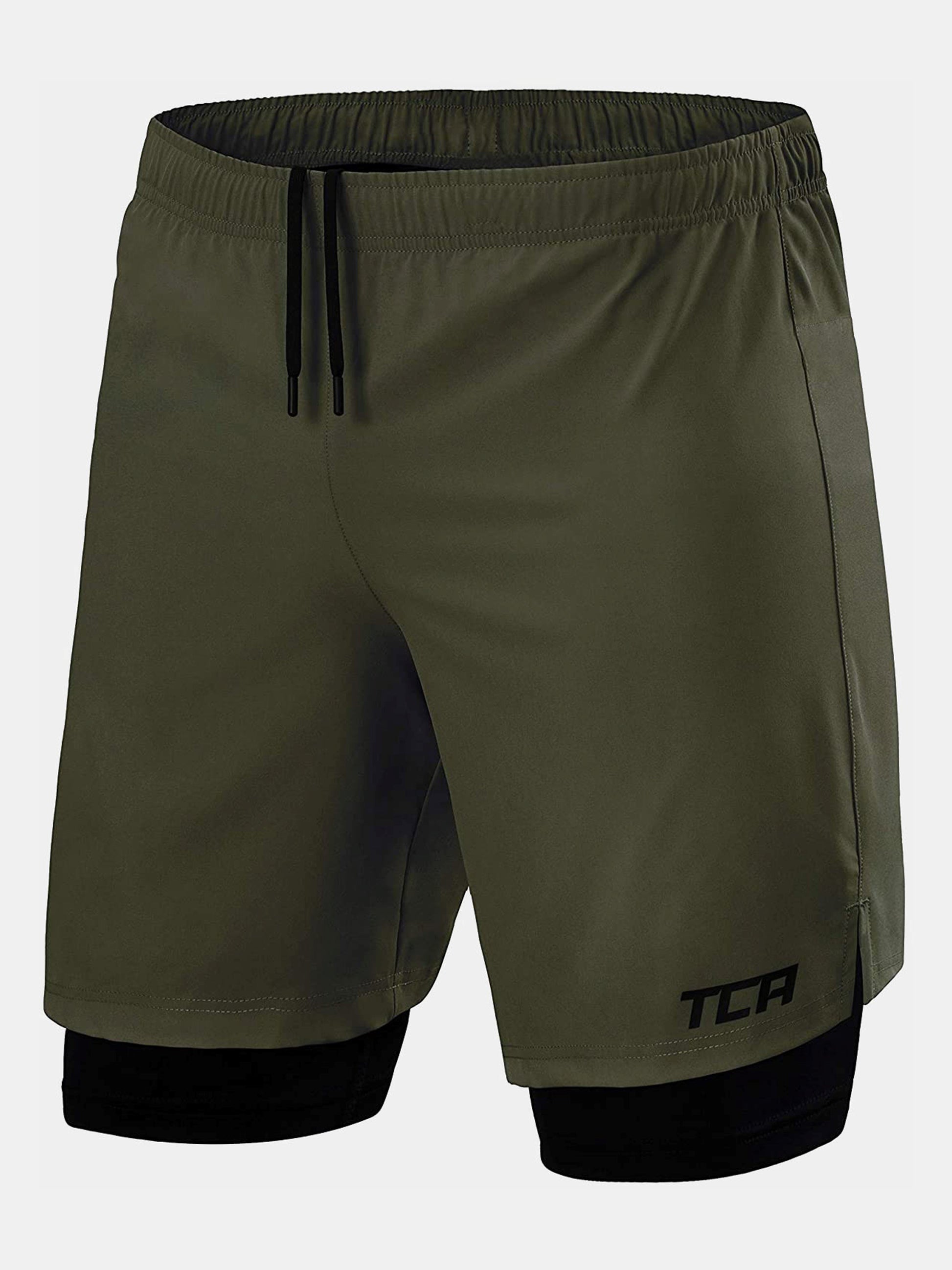 TCA men's 2 in 1 running shorts are perfect for any intense training! Inner compression shorts are paired with lightweight outer for ultimate performance. Designed with quality QuickDry fabric, our men's sports shorts keep you dry and comfortable during every workout. Unsure about sizing? Order a size up for a more comfortable fit.