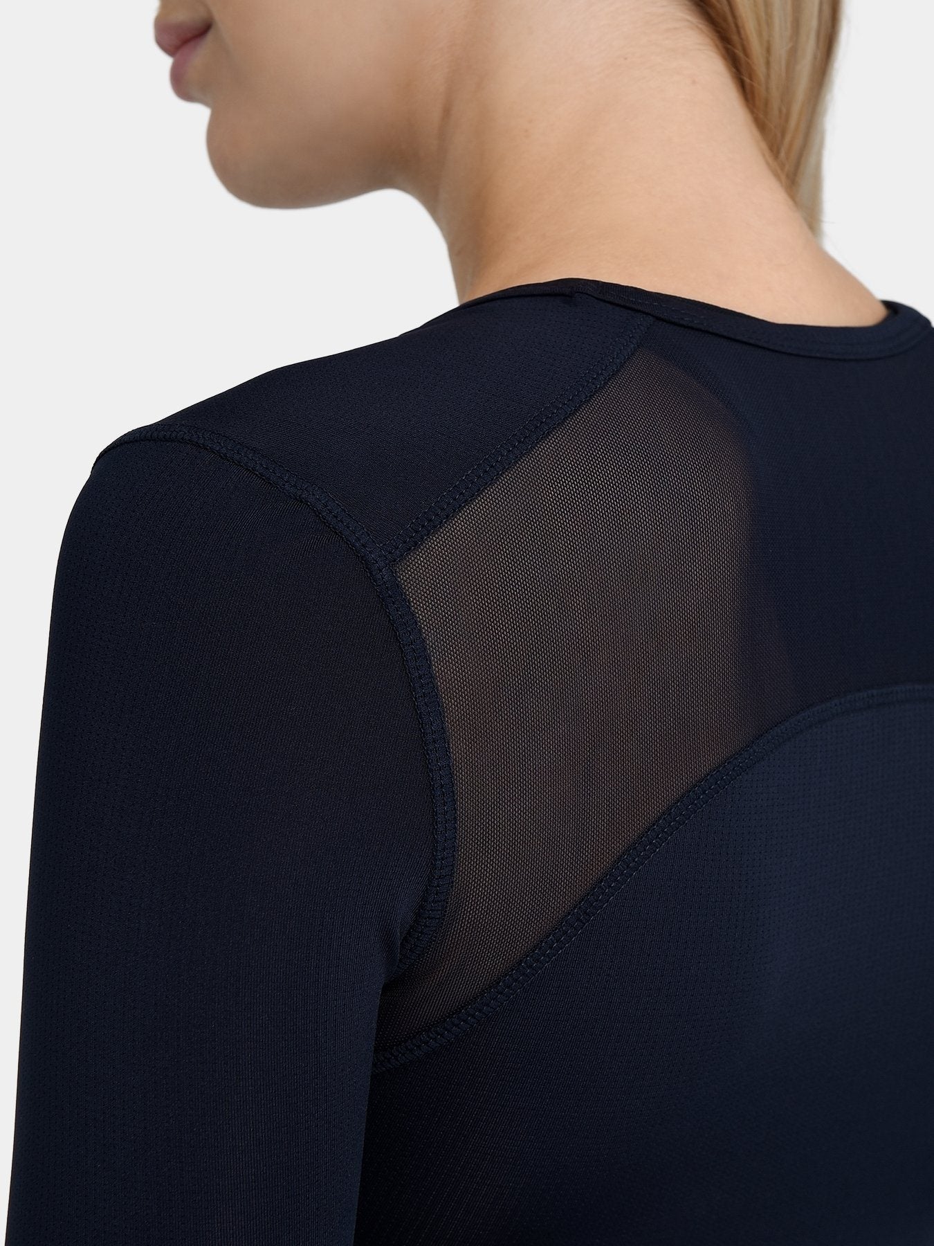 Stamina Long Sleeve Crew Neck Running Top For Women With Thumbholes & Back Zip Pocket