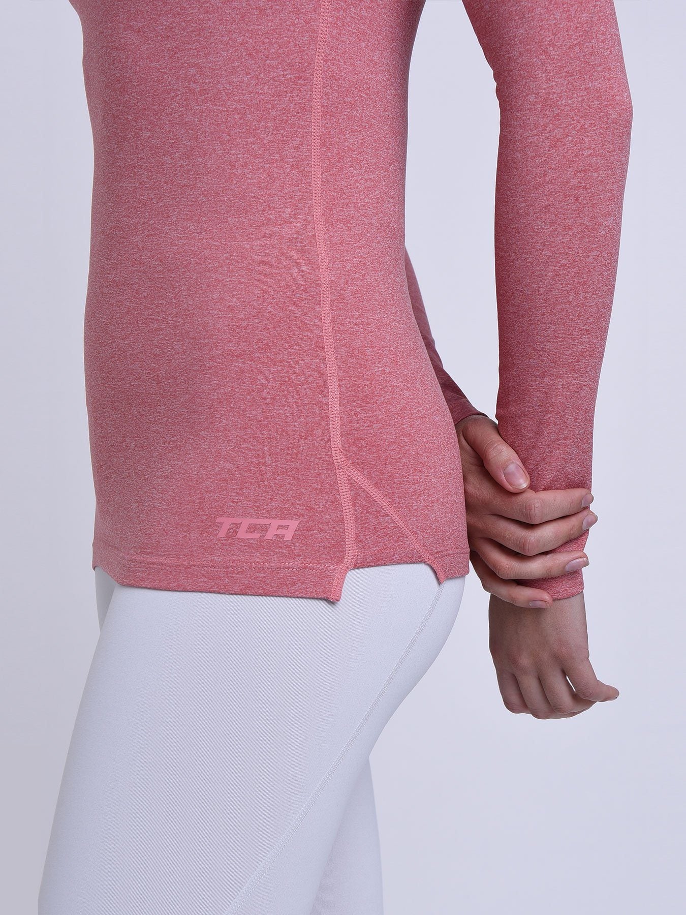 Made from a Super Thermal fabric lightly brushed on the inside to create a soft surface, TCA women's thermal long-sleeve tops keep you warm for training on colder days. Thanks to the 4-way stretch fabric, our thermal compression top for women can be worn on its own or under another top. What are you waiting for? Don't give up your workout, even in winter or when the weather is gloomy! These tops are a compression fit, designed to compress the muscles and enhance performance. We recommend ordering a size up for a more comfortable fit.